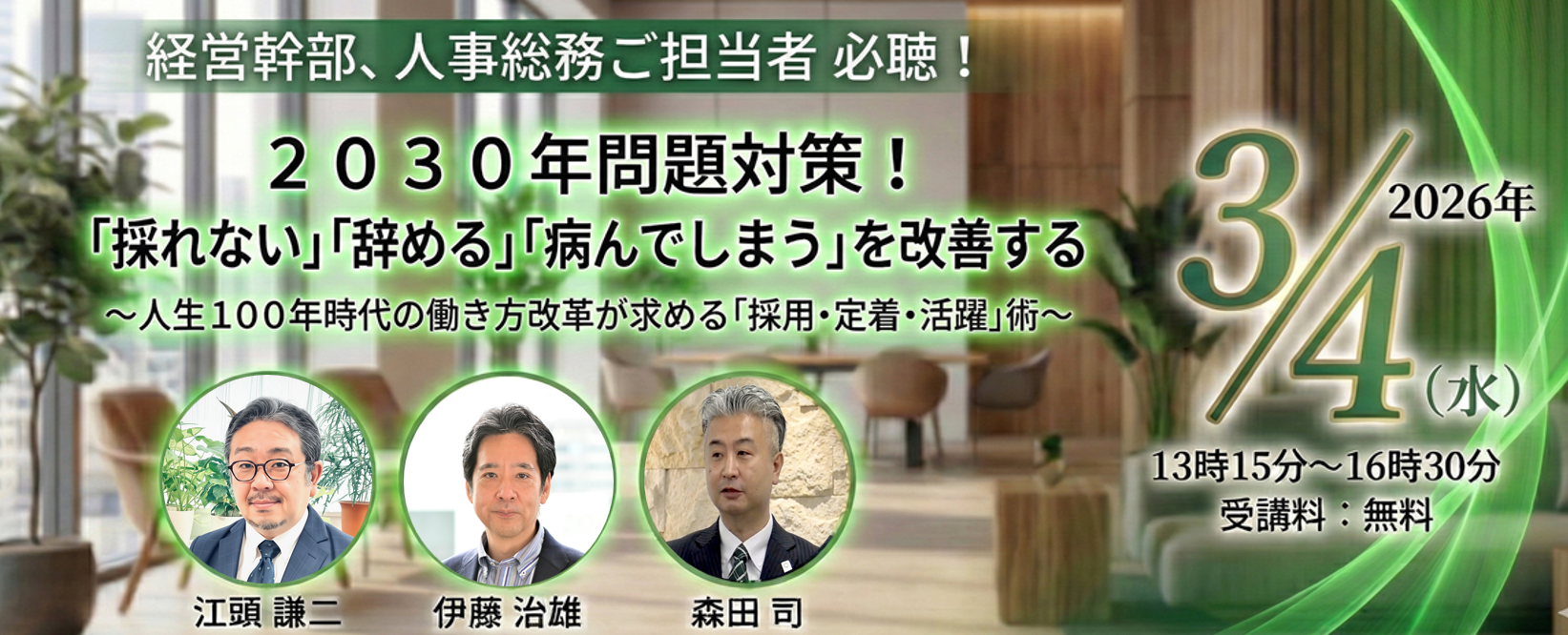 2030年問題対策!「採れない」「辞める」「病んでしまう」を改善する ~人生100年時代の働き方改革が求める「採用・定着・活躍」術~ |