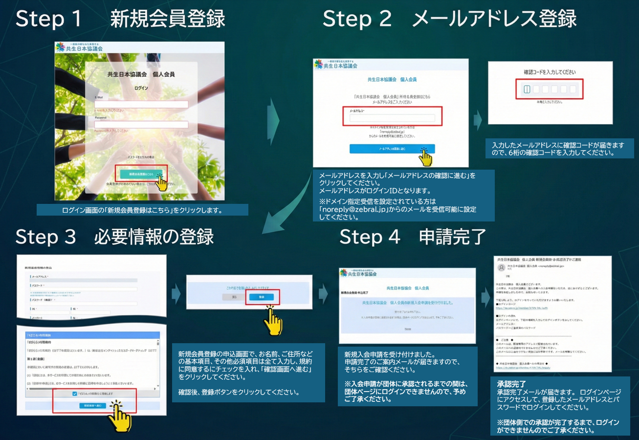 入会申込み後、当協議会事務局よりEメールにてお手続きについてのご案内をお送りいたします。